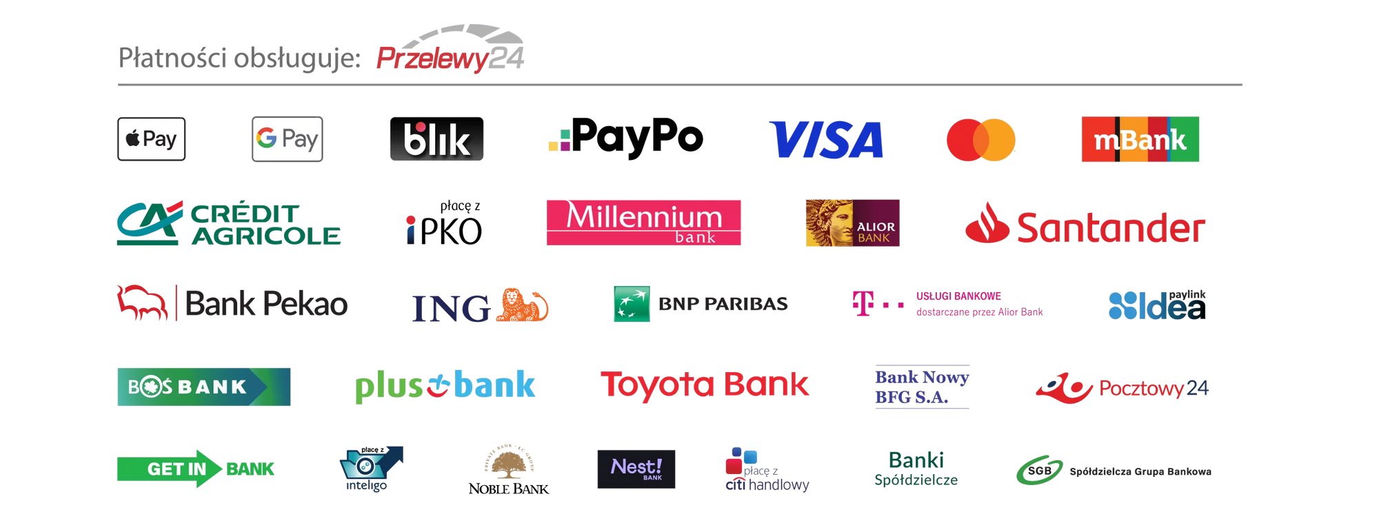 2. Za pośrednictwem serwisu przelewy24. Umożliwia on dokonanie płatności wieloma metodami, takimi jak: